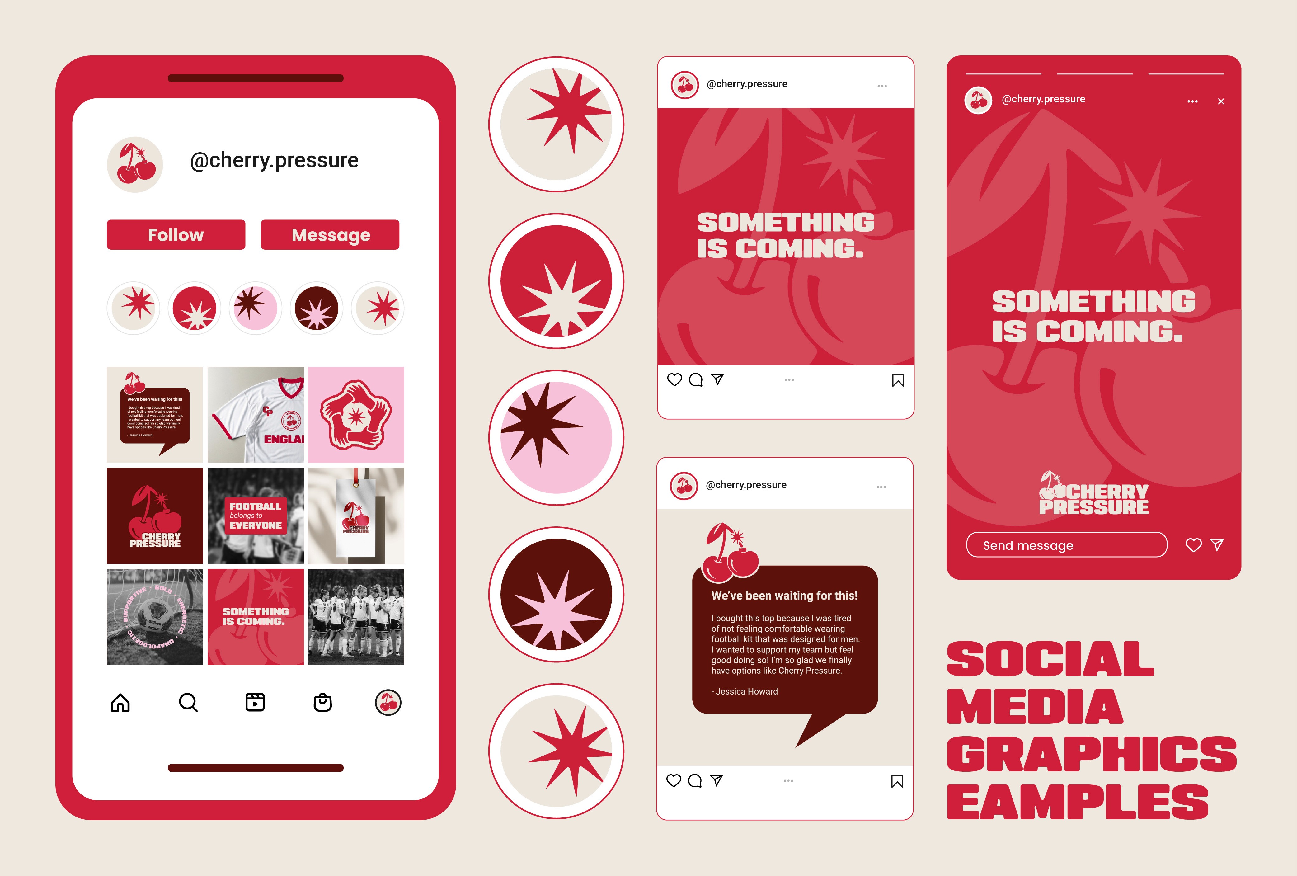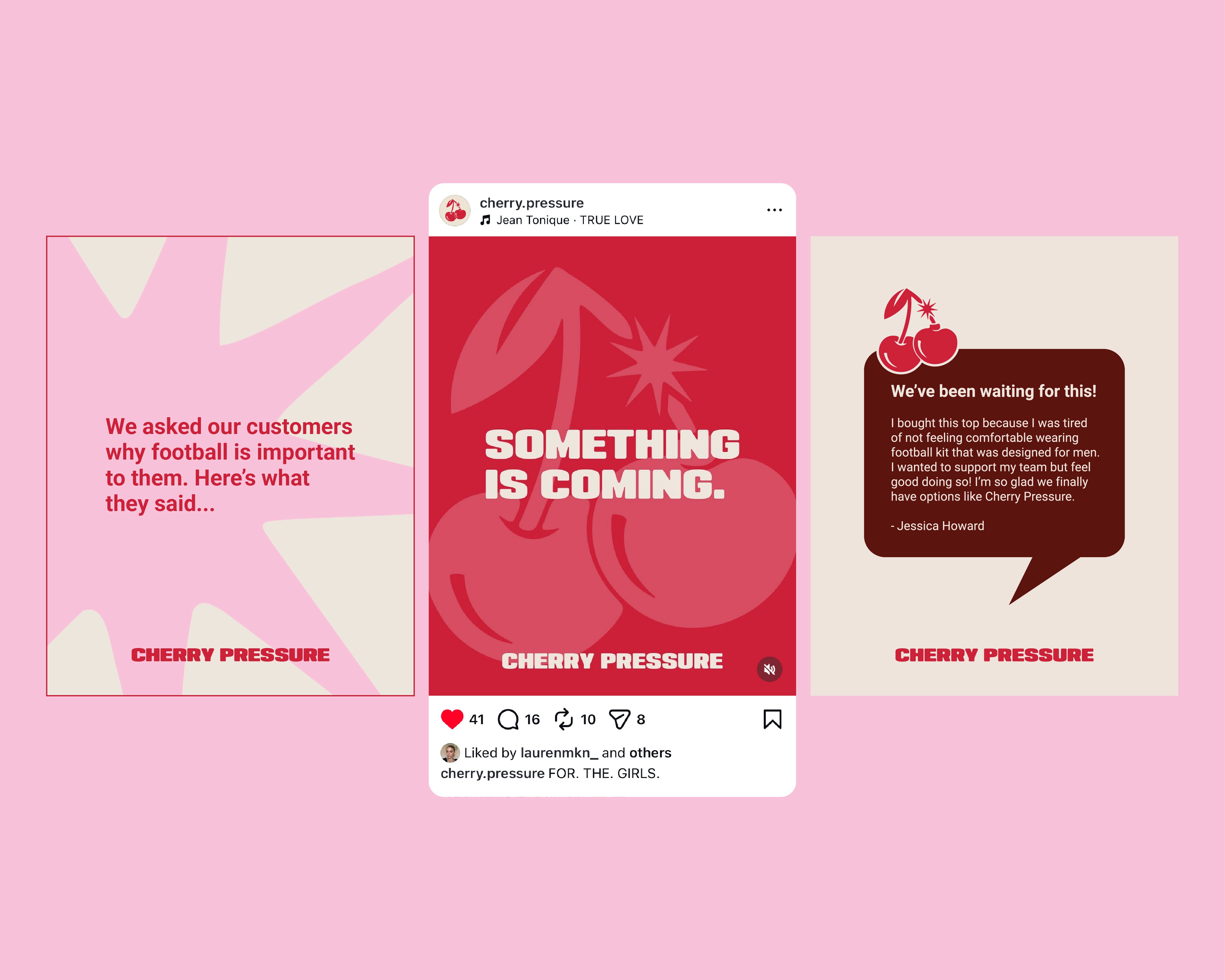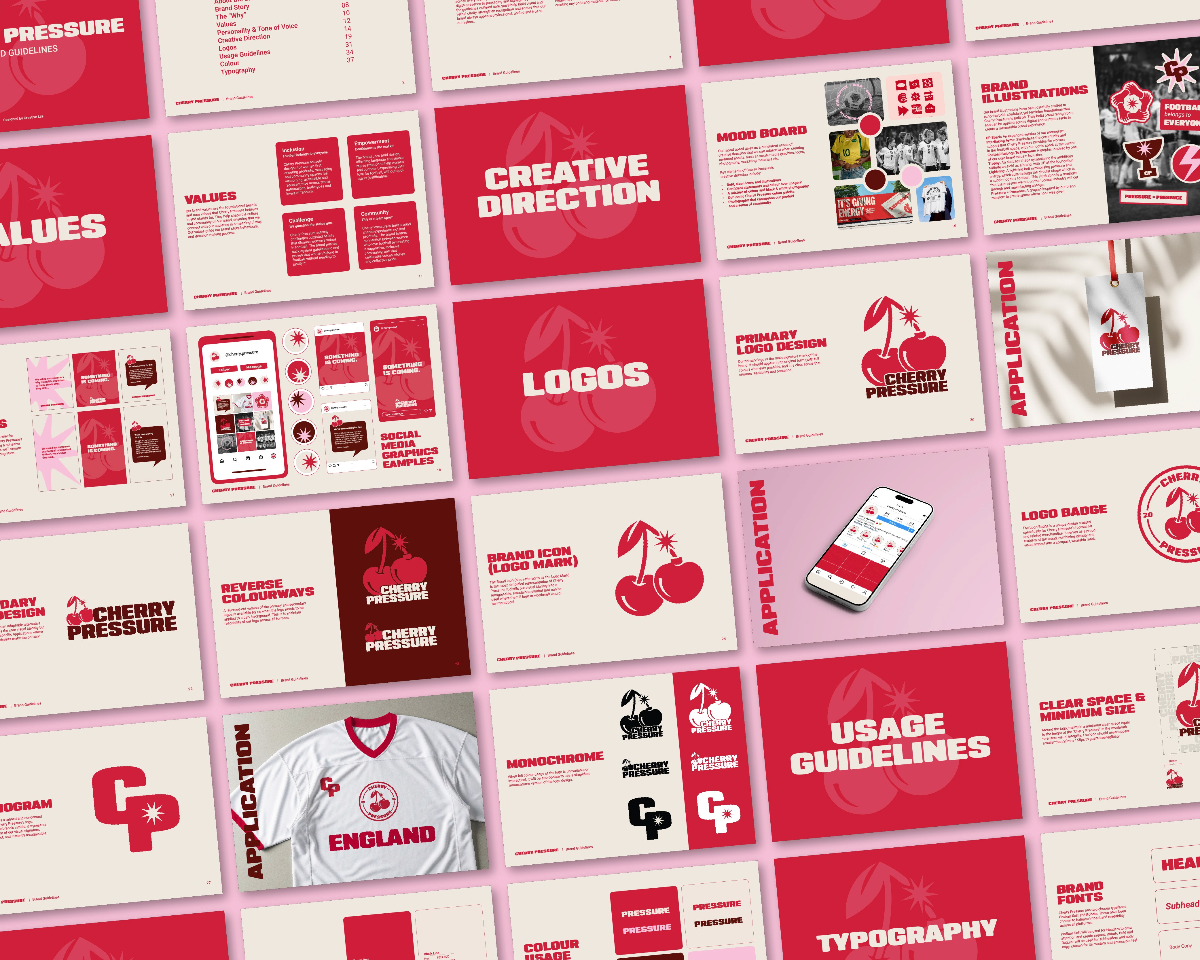 Lauren described the final identity as everything she'd been visualising, finally made real - a brand she felt genuinely confident putting out into the world. Cherry Pressure has since launched on social media to a brilliant reception, and the full brand launch is on the horizon - just in time for the 2026 World Cup, so the girlies can wear their Cherry Pressure tops exactly where they belong.