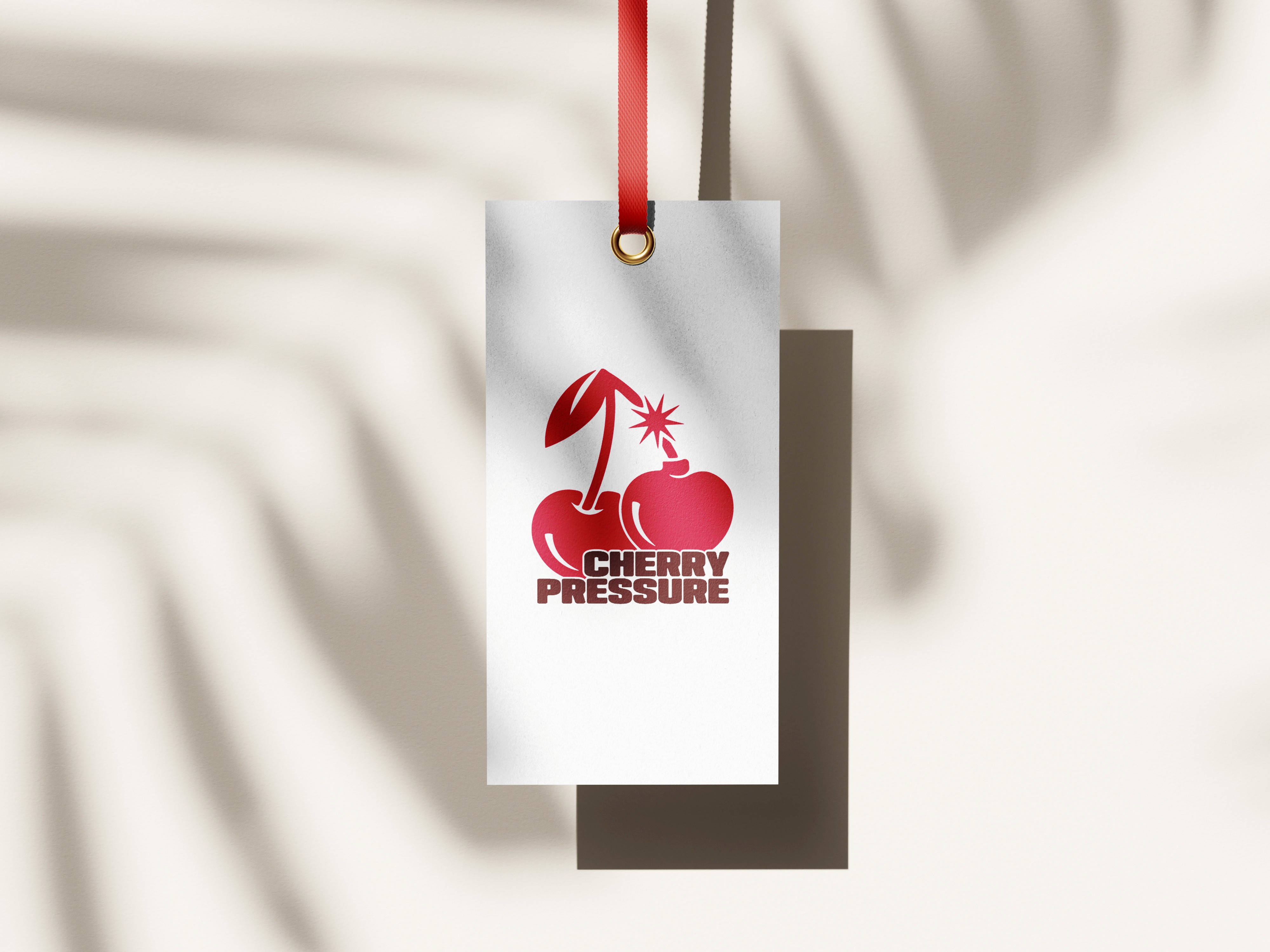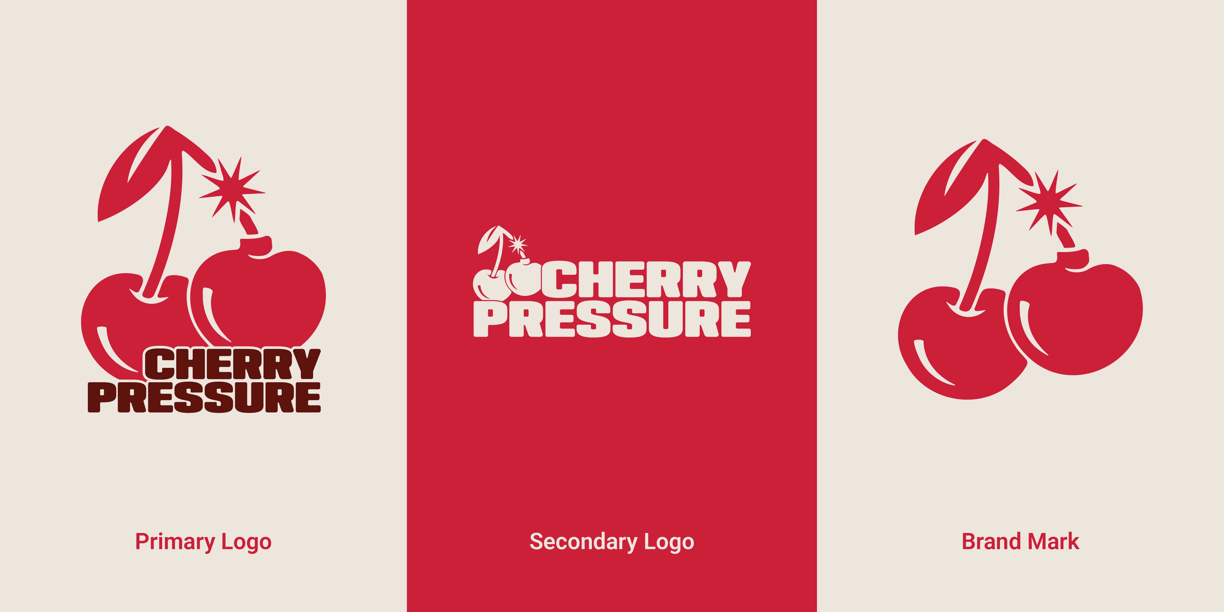 The brand icon went through several iterations before landing on something truly aligned with the values. The final mark features two cherries - but one has been subtly transformed, its stem replaced with a pressure spark, turning it into something that reads a little like a bomb - it's the kind of icon that encourages a second look.